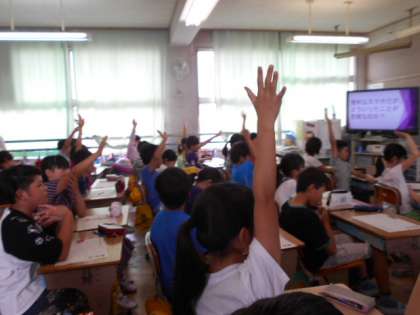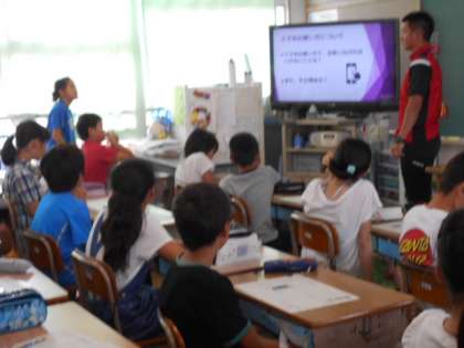 本日は5年生の2組・3組に野田中学校の朝比奈先生が,授業をしてくださいました。「スマホ使用の身体への影響」についてです。どのような影響があるのかをよく考えて,日常生活に生かすことが大切ですね。