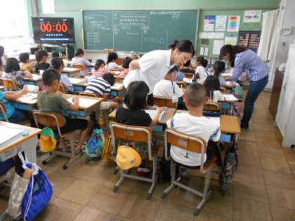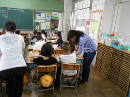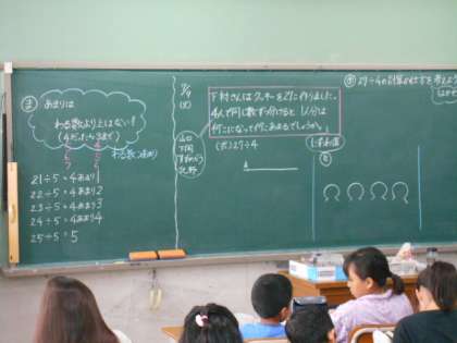 あまりのあるわり算の問題を考えています。前の時間の学習のことを思い出して考えています。