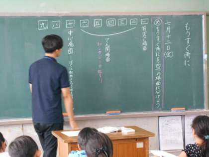 もうすぐ雨にのお話を4つの場面にわけます。よく読んでどこまでが一つのまとまりなのかを考えます。