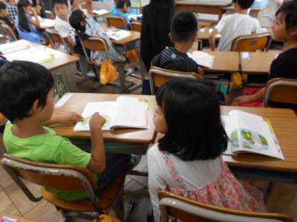 道徳で「きんのおの」の教材を使って学習しています。正直に言うことの大切さを学びます。