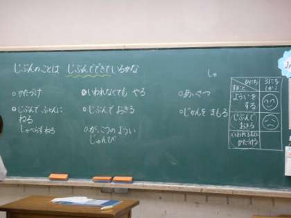 自分でしないといけないことについてできているか,振り返っています。どうすればできるようになるかな。
