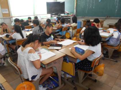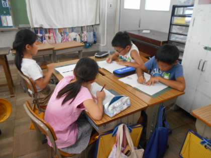1年生に学校生活の楽しさを伝えます。そのために,6年生に「ふれあいデー」について聞き取ります。どんなことをインタビューすればよいのかをグループで考えています。