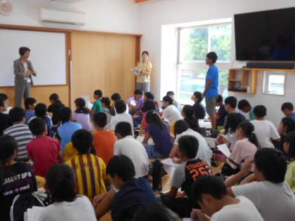 1回目の保育体験を終え,もっと園児に楽しんでもらうためにはどうすればよいかを考えた6年生。2回目の体験では,1回目よりも園児が笑顔になってくれました。最後に園長先生からもお話を聞かせていただきました。