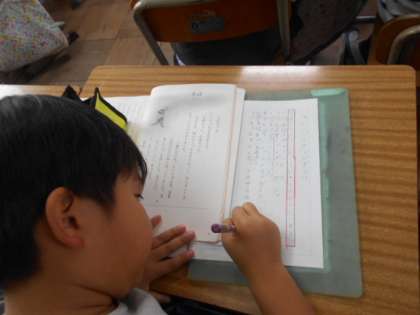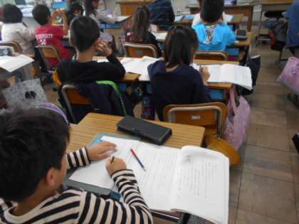 物語全体の中での,五場面の役割を話し合います。この場面がなくてもお話はよくわかるのに,なぜ一番最後にこの場面があるのか,まずは一人で考えています。