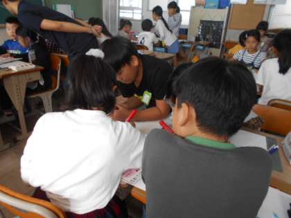 ハーモニーの方との1回目の交流を終え,うまくいったところ,いかなかったことを整理しています。高齢者の方に笑顔になってもらうためには,どうすればよいのか,みんなで知恵を出し合っています。