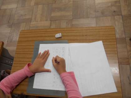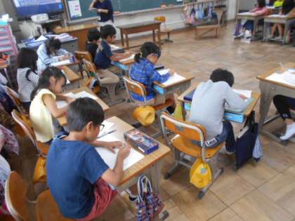 お手紙の音読げきをしています。聞いた感想をノートに書いていきます。