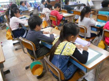 漢字のいろいろな読み方についての学習です。「九月九日,九さいになりました。」『九』の読み方がそれぞれ違っています。