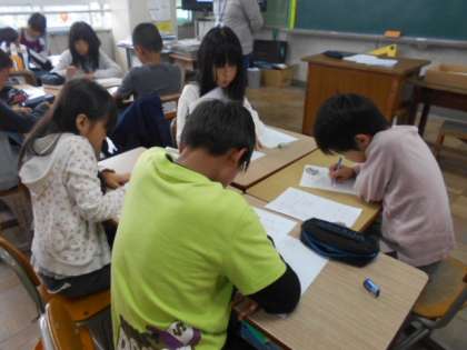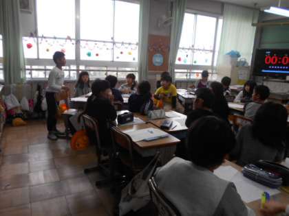 「こんなクラスにしたい」と思うものを,いくつかの項目の中から4つ選びます。選んだら,一人ひとりの考えをグループで出し合い,また4つにまとめていきます。同じ意見や違う意見がある中で,どのようにまとめていくのかに挑戦しています。
