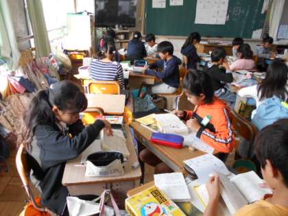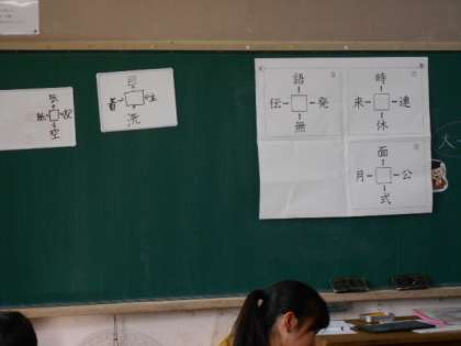 同じ漢字を使った熟語をパズル形式で考えます。辞書などを活用して学習を進めていきます。