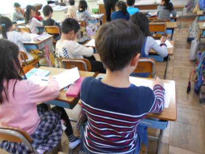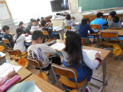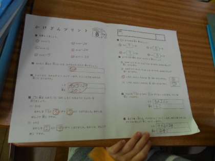 計算問題の答え合わせをしています。順番に答えを言い,あっているかどうかを確かめています。