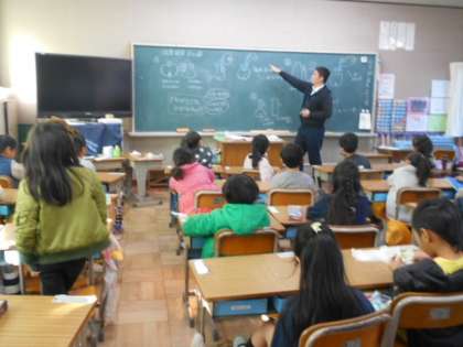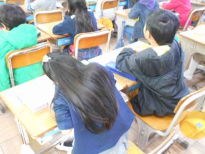 水が入る容器の大きさを比べます。3つのびんのうち,どれが一番水がたくさん入るのかを調べます。どうすると比べられるのか,実際に水を使って確かめた後,ワークシートにまとめます。