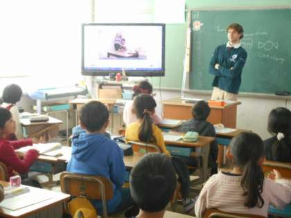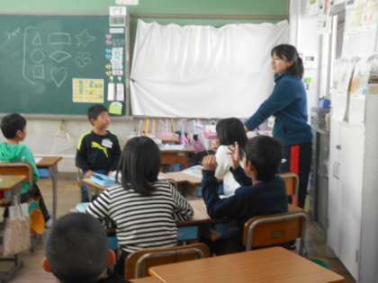 映像を視聴して話している様子から,何月のことか,何日のことかなどを考え,英語で答えます。ものあてゲームもして英語に親しんでいます。