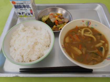 今日はカレーうどんでした。香辛料ととろみで体がぽかぽかと,温まりました。