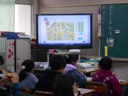 英語の指示を聞いて,地図をたどっていきます。go straightやturn right(left)