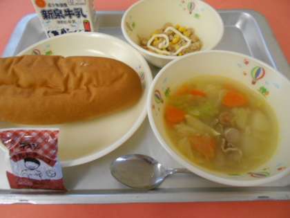 今日は寒いですね。給食では「ポトフ」のような大おかずでした。