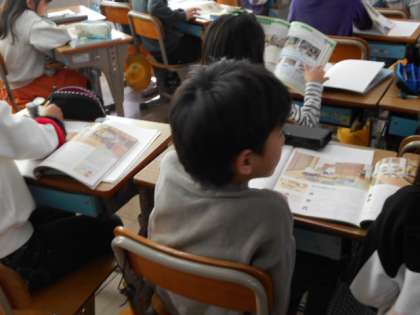 3年 社会 昔の道具と人々の暮らし 公開日 2020/01/09 更新日 2020/01/09 3年生 家庭の中にある電気で動くものを発表しています。昔の暮らしの絵を見て,今の生活との違いを見付けています。
