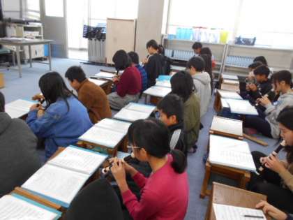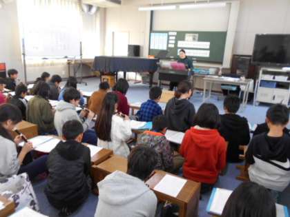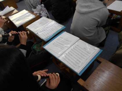 「星に願いを」のリコーダー奏をしています。心を合わせて演奏しています。