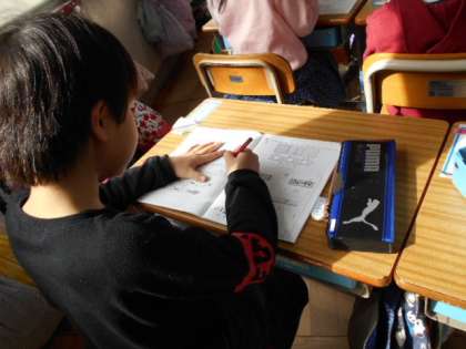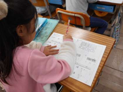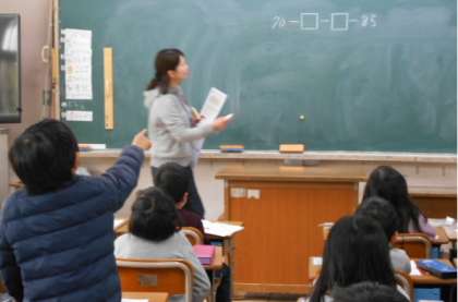 1年 算数 答え合わせ 公開日 2020/01/16 更新日 2020/01/16 1年生 自分たちで答え合わせをしています。難しい問題は,みんなで考えます。70,□,□,85の□に入る数字はそれぞれ何かを話し合っています。