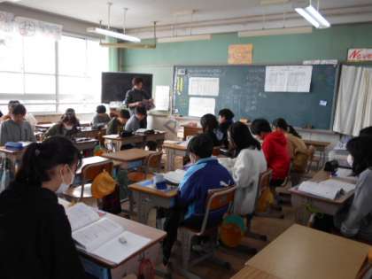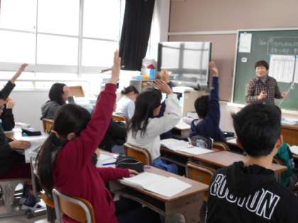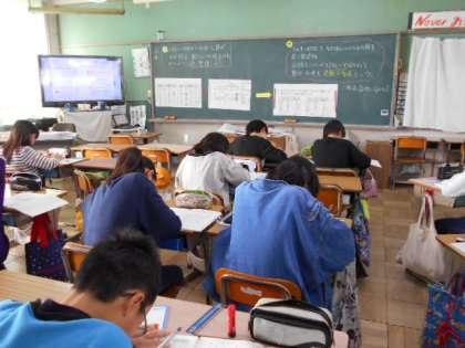 ソフトボール投げの記録をもとに,散らばりの様子を表やグラフに表します。どのように記録を区切っていけばよいのかを考えています。