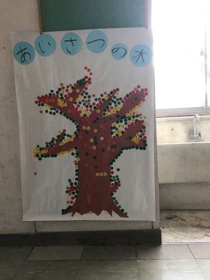 1年生は、あいさつの木に取り組んでいます。