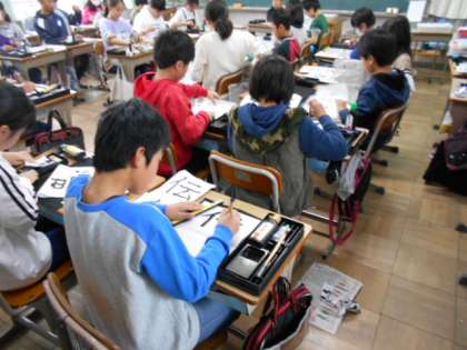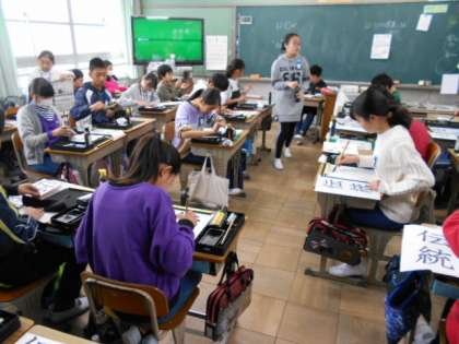 「伝統」という言葉です。筆先に意識を集中させて書きます。
