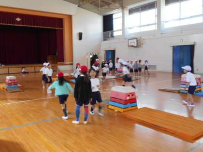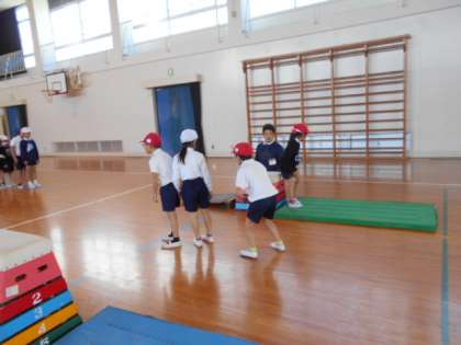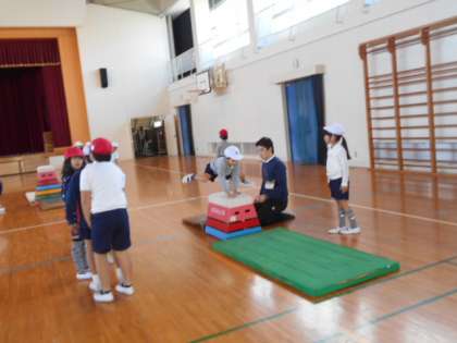 跳び箱で,自分のできる技に挑戦です。繰り返し何度も頑張っています。
