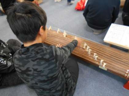 今日は,お琴の先生に来ていただき,お琴の演奏体験をしました。みんな真剣に取り組み,きれいな音色を出していました。