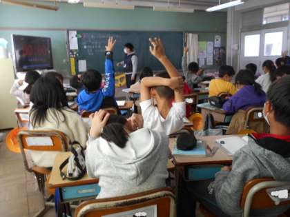 人や物の輸送についての利用手段や目的について,話し合っています。