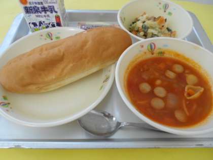今日は新登場の献立がありました。「厚揚げのグラタン」は,主の具材が他ではめずらしい厚揚げです。他に小松菜や乳製品とのタイアップで,カルシウムと鉄分豊富な献立です。かくし味に白味噌が入っているのもポイントです。