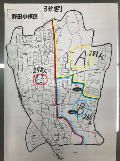 ※各グループを15人以内にするため,学級によっては,写真で示した地域分けと異なる場合があります。その際,担任より今週中に相談のご連絡をさせていただきます。