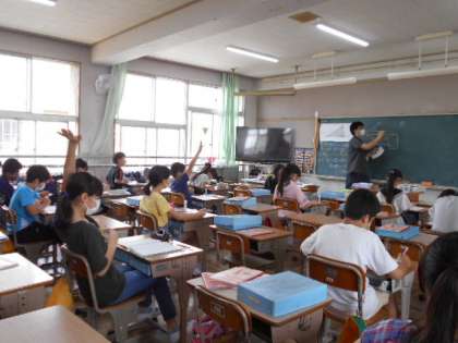 三角形の内角の和は180度です。そのことを使って,わからない角度を求めています。