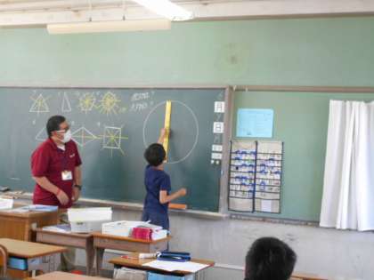 線対称な図形を探します。対象の軸が何本あるかも考えます。円には対象の軸が何本あるのでしょうか。