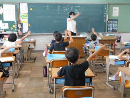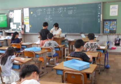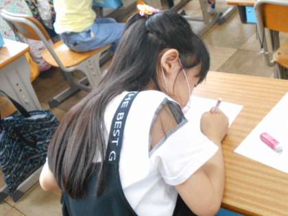 新出漢字の練習です。腕を大きく使ってそら書きしてから,ワークシートに丁寧に文字を書いていきます。