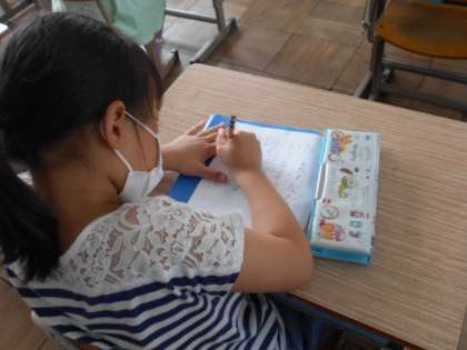 新出漢字の学習が進みます。書き順をしっかりとそら書きで確かめてから練習します。