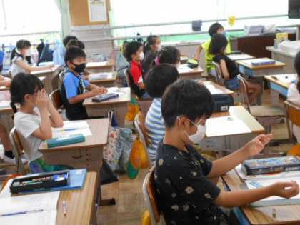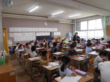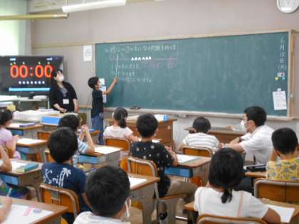 教師2人体制での指導です。式にあった問題作りに取り組んでいます。図を参考に考えたことを発表しました。