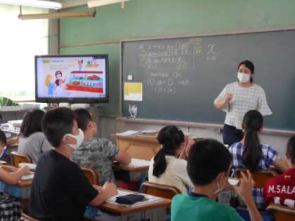 文字式を学習しています。XやYに置き換えることで解きやすくなることを知ったうえで,表記の仕方について学習しています。