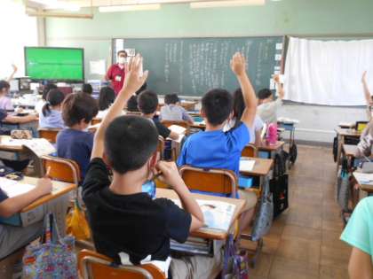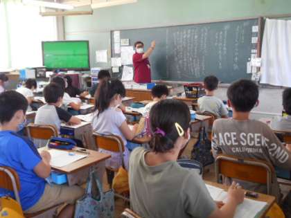 「まどさんからの手紙」が伝えていることについて考えます。まどさんの言う「小学生はすごいとき」とはどういうことか,みんなで話し合っています。よりよい未来をみんなでつくっていけるといいですね。