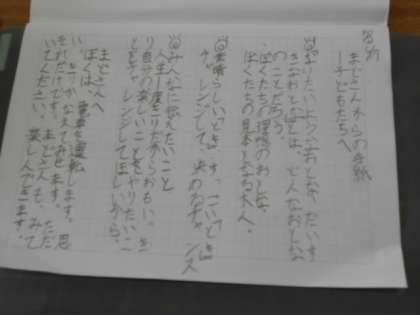 まどさんからの手紙を読み,どんな大人になりたいか,小学生の時はどうして素晴らしいのかを考えています。まどさんへの返事に,これから先自分はどんなふうになっていきたいかを書いています。