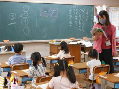 「問い」の文と「答え」の文に気を付けて読む説明的な文章です。音読しながら内容をとらえています。