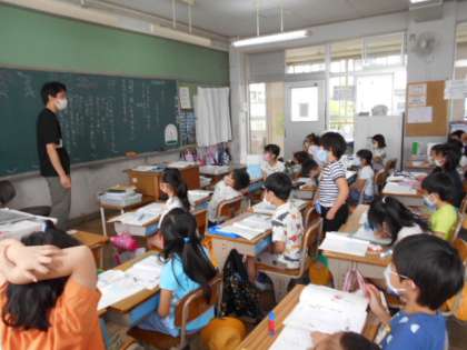 あらすじをまとめることを学ぶ文学的な作品です。3場面にはいろいろな生き物たちが登場します。スイミーが元気になるところです。整理して書き出してみました。