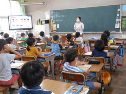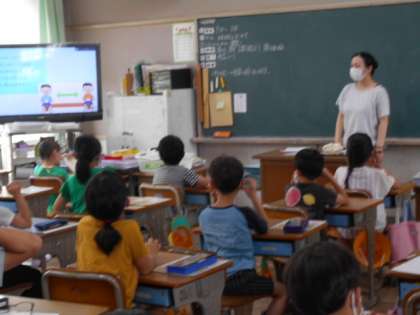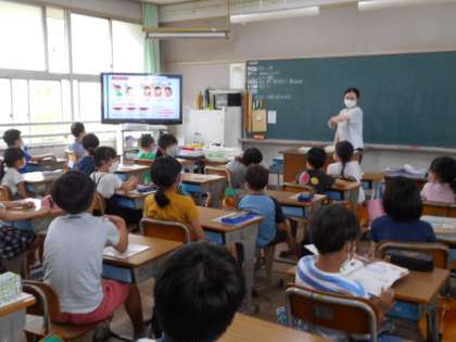 養護教諭から,新型コロナウイルスの感染予防のために,なぜマスクの着用や手洗い,ソーシャルディスタンスが必要かの話を聞いています。日常から,睡眠,バランスの良い食事,適度な運動などにも心がけ,丈夫な体をつくりましょうね。