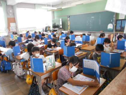 よみとりのテストをしています。本文を読んで,じっくりと考えます。