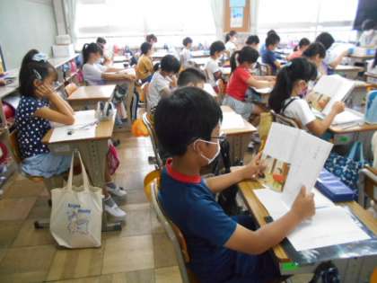 今日は初めてお話を聞き,感想を持つ場面でした。