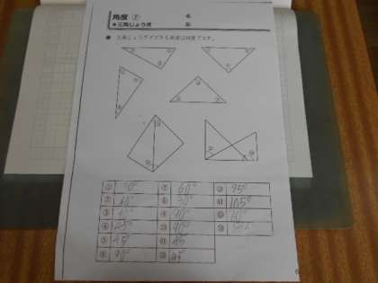 三角定規の角の大きさを調べました。友達と協力しながら取り組んでいます。