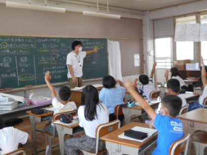 小数のわり算を使って1mあたりのリボンの代金を求めます。解き方を話し合いました。