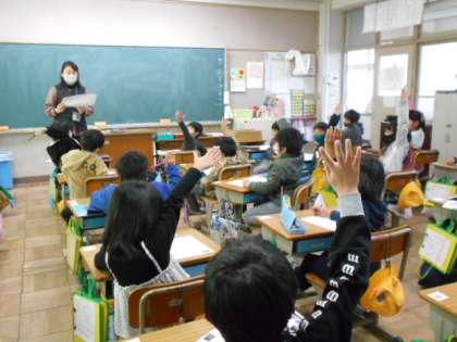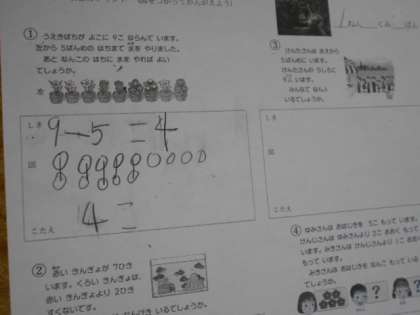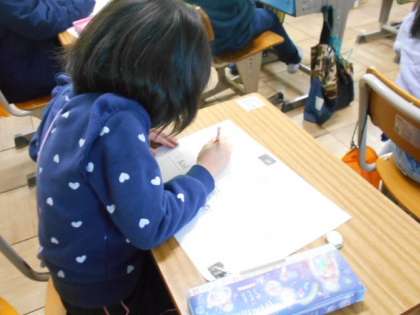 図を使って問題を解きます。復習プリントで学習したことをたしかめます。