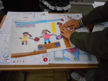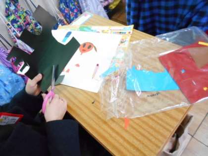 1年間の生活で心に残ったことを,紙版画で表します。カラフルで楽しい作品が仕上がってきています。