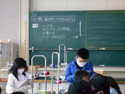 水を温め続けるとどのようになるのでしょうか?「ふっとうする」「水の暈がへる」などの予想が出ています。