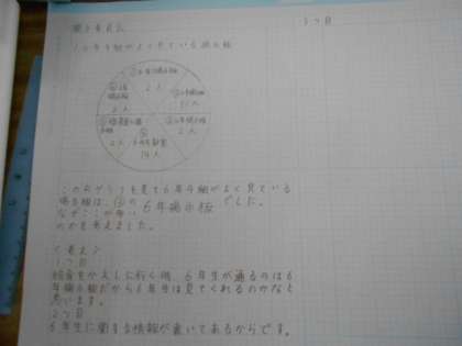 気になることについてデータを調べ問題を解決します。委員会として気になることをアンケート調査し,データを分析してよりよい学校生活に生かします。