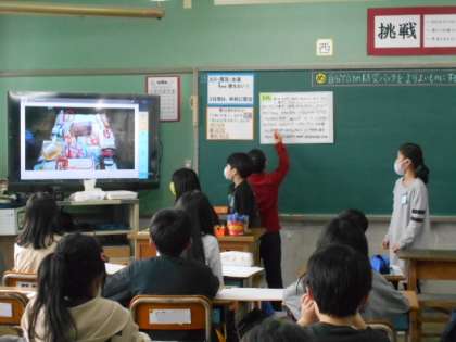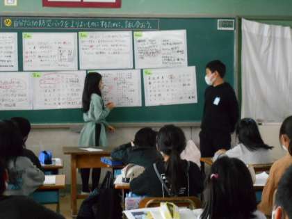 自分たちが家から持ってきた防災バッグの中身をよりよいものにします。友達の考えを聞いて,自分の考えと比べています。